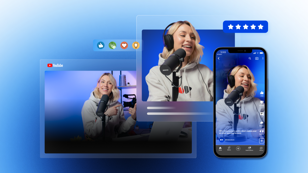 No. Videodeck does not use AI to generate the on-screen speaker or replace any part of the creative process. Every video is produced by real actors, experienced videographers, professional editors, and graphic designers. Each project goes through multiple hands to ensure the final result looks and sounds exceptional, with strong visuals, polished editing, and professional sound design.